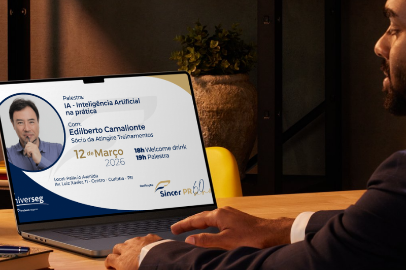 O Sindicato dos Corretores de Seguros do Paraná (Sincor-PR) promoverá, no próximo dia 12 de março (quinta-feira), uma palestra sobre Inteligência Artificial, ministrada por Edilberto Camalionte, sócio da Atingire Treinamentos. O encontro será realizado às 18 horas, no auditório do Palácio Avenida, em Curitiba.